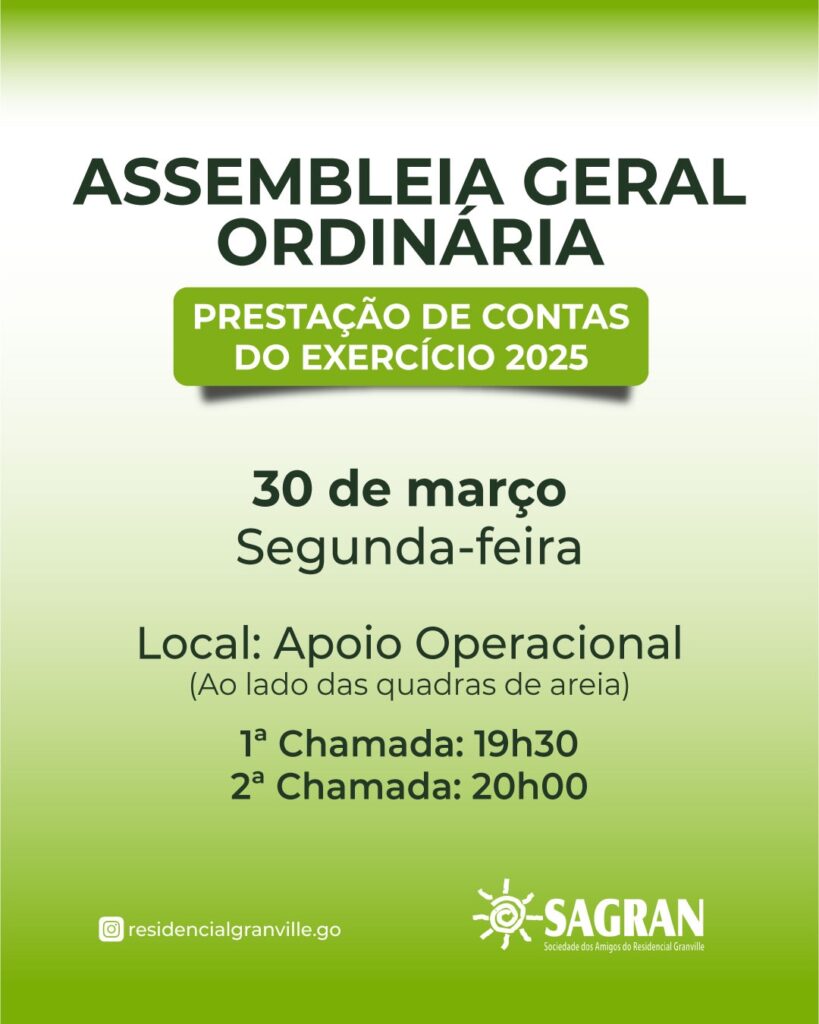 Assembleia Geral Ordinária dia 20/03/24